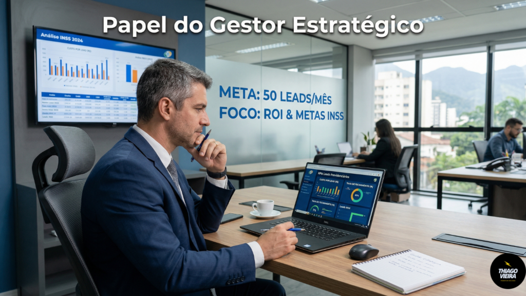 Ei, líder, seu superpoder é o “porquê”. Nada de pixelar em anúncios – foque visão, metas e deals grandes no escritório previdenciário digital. Analise ROI, conversões e retenção pra escalar pro Brasil todo, sempre com OAB no radar.