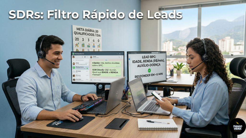 - Contrate certo: SDRs com papo de vendas B2C; advogados só pra fechar e INSS.