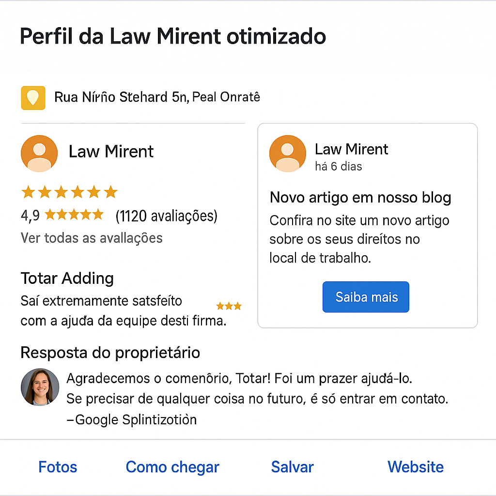- Incorporar palavras-chave relevantes como “Google Meu Negócio Advogados“, “advocacia local”, “clientes jurídicos”.